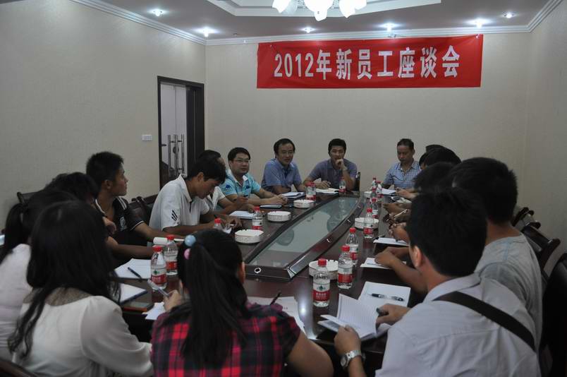 2012年8月25日下午,钟鑫公司组织2012年新进员工召开入职之后的第一次交流谈心会,为公司领导与新员工提供一次深入交流的机会,帮助新员工更好地了解公司管理理念,明确未来前进的方向。公司总经理王智高、支部书记王繁及部门负责人参加座谈会。
