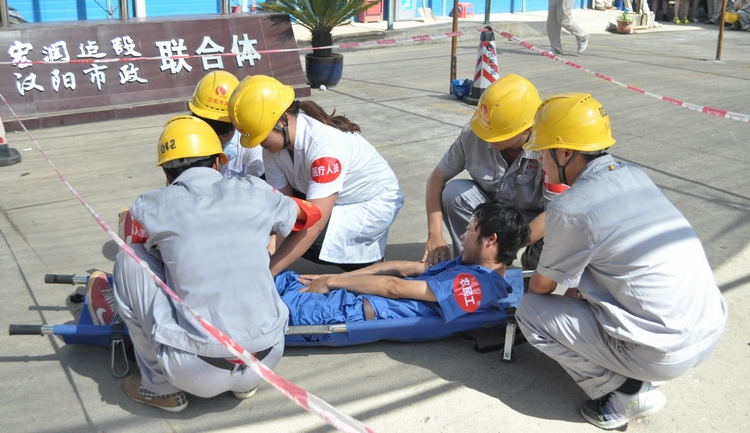 6月16日下午,钟鑫公司安全演练比赛在玉龙路地铁项目部举行。三支来自地铁项目部的队伍参加了此次比赛。钟鑫公司经理王智高、书记王繁及集团公司安全文明办罗艳明部长观看了比赛。来自汉口北项目部、三号线六标项目部和玉龙路地铁项目部的三支参赛队伍分别演练了工人高空跌伤、负高空坠落物体打击、盾构施工中机械伤害等科目。