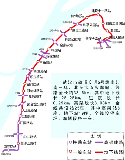 武汉市轨道交通5号线工程第七标段中标产值5.7亿,工期881天。该工程横贯武昌东西,串接了白沙洲、武昌老城区、武昌滨江商务区、徐东片区、青山滨江商务区、红钢城商圈,武钢厂前和武汉火车站,是武昌镇内轨道主干线,也是联结贯通武汉城市圈的又一重要线路。