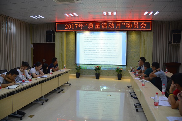 根据集团公司“质量活动月”方案的精神和内容,为进一步加强钟鑫公司质量品质,切实组织开展好2017年“质量月”活动,努力在全公司营造“重视质量、追求质量、崇尚质量、关心质量”的氛围,广泛开展质量安全宣传活动,优化质量发展环境。钟鑫公司2017年度“质量活动月”活动动员会于2017年9月8日下午17时在公司一号会议室顺利召开。钟鑫公司总经理涂轶铭,副总经理徐浩,各项目经理等共30余人参加本次动员会。会议由公司质安部部长杨洁主持。