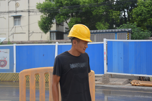 初次见面,徐军涛害羞且寡言,目光所及都是施工作业,他的专注会让人觉得走近拍摄是对他的一种打扰。清晨亮起的微光仿佛是一天高强度工作开始的讯号,从讯号发出到进入奋战状态之间无缝衔接。夏季武汉凉爽的早晨到9点就结束了。烈日炙烤下的施工现场让人不禁感叹时间过得真慢啊,真想一眨眼的功夫这暑气便能褪去。晴空万里,天上没有一丝云彩,太阳把地面烤得滚烫。一阵热风刮来,从地上卷起一股热浪使人感到阵阵窒息。杂草抵挡不住太阳的曝晒,叶子都卷成了细条,但徐军涛却像没有感觉到这酷暑似的继续工作。