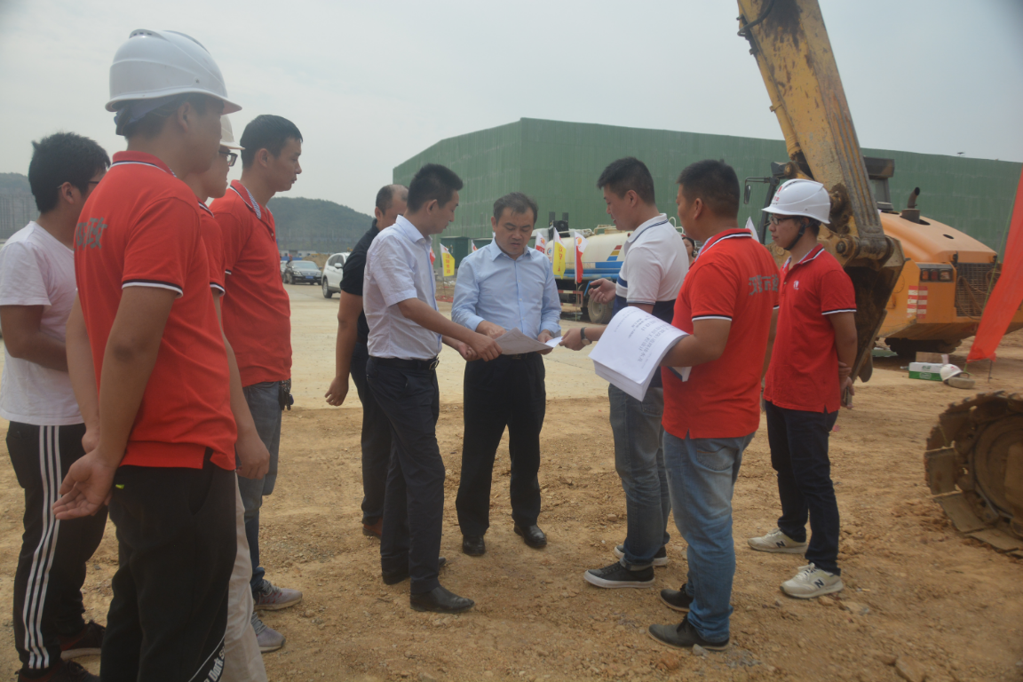 为了全面了解工程情况,也为了鼓舞现场施工队员们的士气,严悌文亲赴项目现场,带领项目部员工对照着施工设计图仔细的勘查现场,了解工程总体情况,要求工作人员们现场施工一定要提前充分了解现场水文地质、沟槽回填和施工安全。临行前还不忘关心班组建设情况、员工吃住情况等,鼓励我们不忘初心、牢记使命、勇于奋斗,以打造精品工程的标准来开展施工,确保项目保质保量保进度,树百年企业精品工程,造外围市场道路标杆。