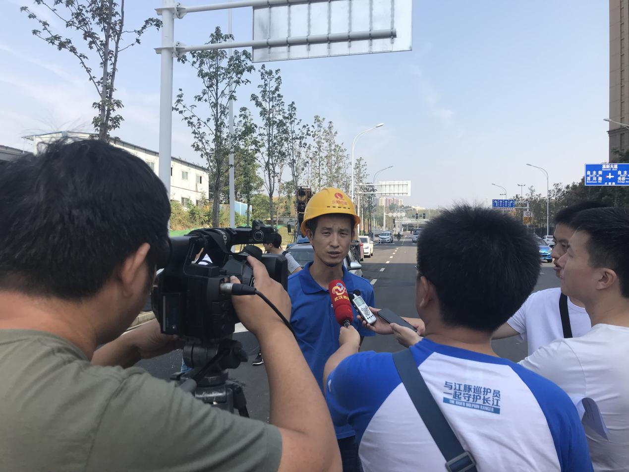 9月30日上午,在汉阳市政光谷火车站周边五条路项目通车现场,武汉市多家媒体聚焦于此,武汉电视台、长江日报、楚天都市报等媒体争相报道项目通车状况,汉阳市政项目负责人熊雨辉接受了媒体采访。