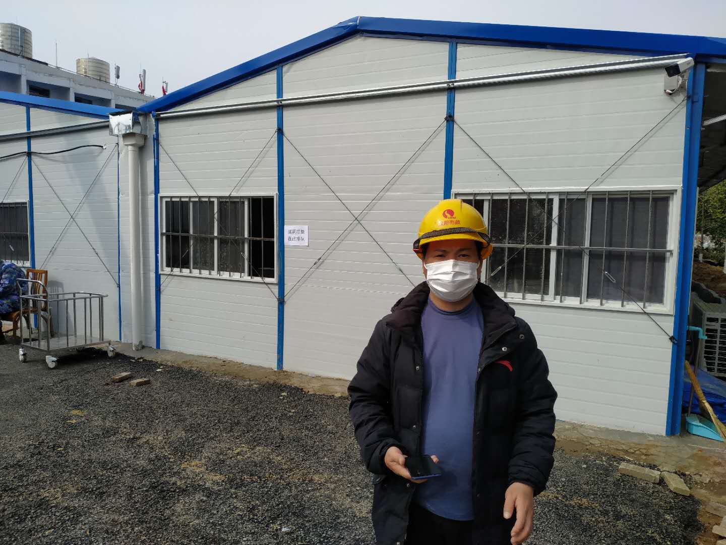 “最让我难忘的就是在火神山,同伴们团结一心、众志成城,没有情绪,不发牢骚,有什么任务都是第一时间马上完成,有什么困难大家都积极帮忙。”在这样的氛围中,周江雄感受到了集体拧成一捆绳的力量,他在现场负责施工以及联系材料,每天只休四、五个小时,起床的第一件事就是询问工程进度,然后进驻施工现场。连续的奋战使他十分疲惫,2月7日的一场雨打断了他的抗“疫”征程,在雨中坚持施工了一天的他,没能撑住身体,感到身体发软后无法再继续奋战,回家休息后的他依然十分牵挂现场情况,当身体慢慢好转,他又选择继续向前,然而新洲更加严格的管控措施阻挡了他前进的脚步,“没能继续和同事肩并肩战斗,我有些遗憾,但我的心一直在他们身边,与他们战斗,继续加油,完成使命”,这是他没能在同事身边,发出的最振奋的鼓舞。