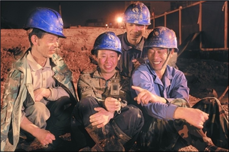 照片中有亲情,有武汉大建设,有消防官兵在废墟的闪光,有笑脸,有武汉的枢纽火车轨道,有摩登城市大武汉全景,有黄昏的火烧云,而令我眼前一亮的是,一张最普通的照片:四个农民工的自拍照,熟悉的工地,朴素的笑脸,头上的安全帽印着“汉阳市政”四个字及logo。