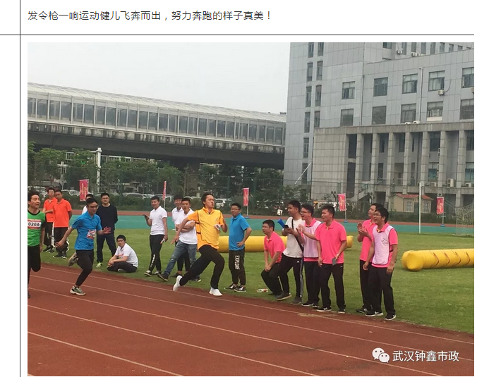 2019年4月30日,值五四青年节来临之际,为激发职工运动热情,展现市政青年昂扬向上的精神风貌,汉阳市政集团公司在汉阳区全民健身中心田径场成功举办了“喜迎军运会 激扬青春 职工运动会”。